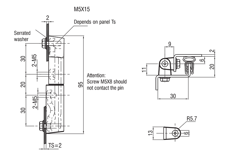 Внимание: Винт M5X8 не должен соприкасаться со штифтом.