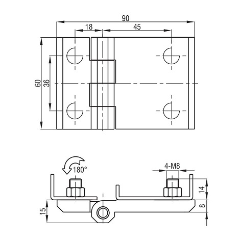 Петля накладная 60х90 М8 черная 4202