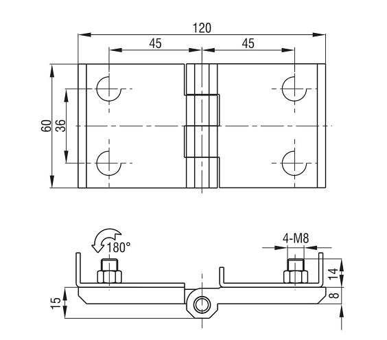 Петля накладная 60х120 М8 черная 4202