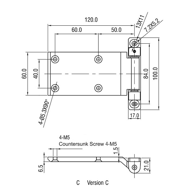 Отверстие для винта с потайной головкой 4-M5.
