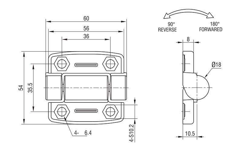 Петля накладная 54х60 М6 черная 4270